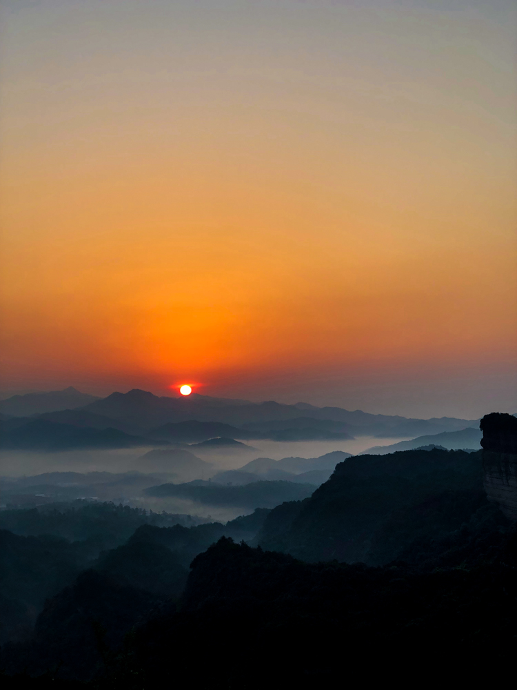 山上有三個點可以看日出,舵石景色比較開闊,韶音亭近但景色中規中矩,觀日亭說是景色最好的。