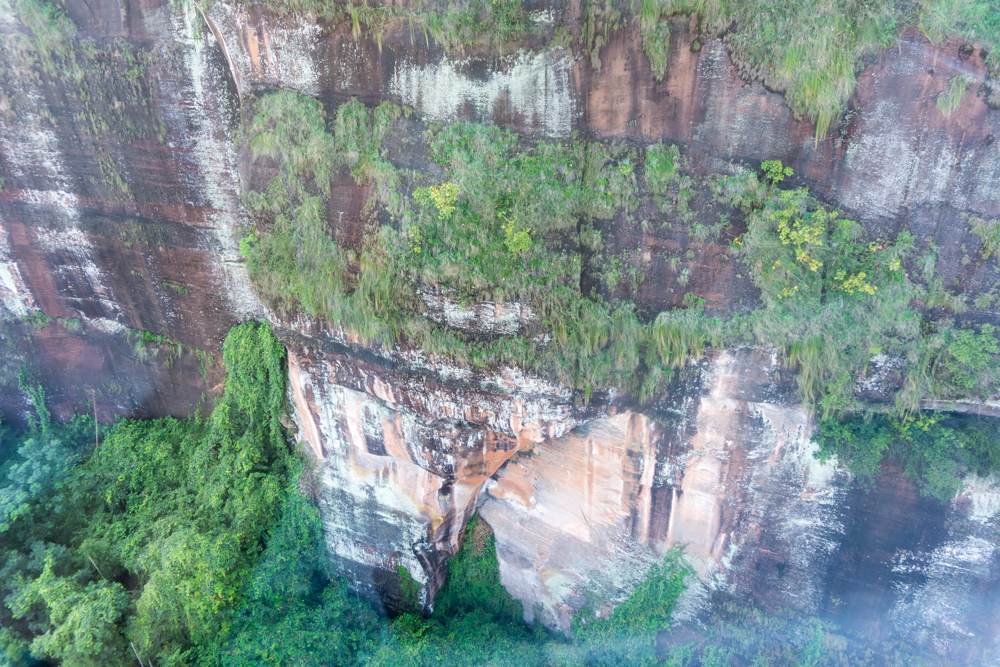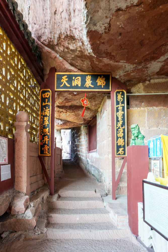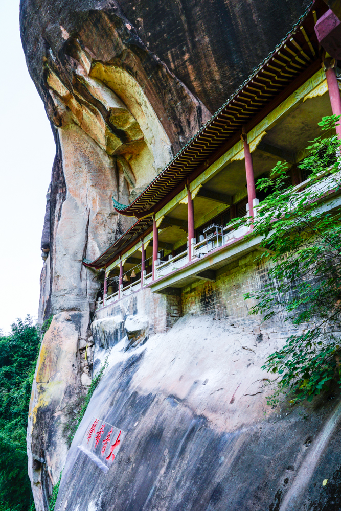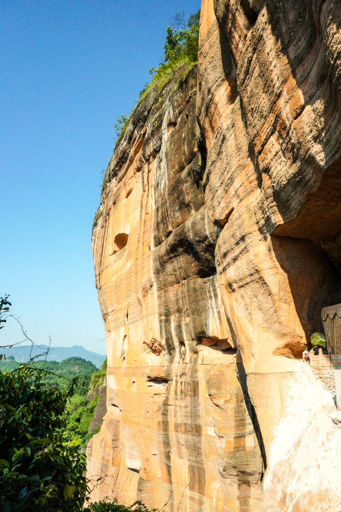 穿過整個寺院能看到盡頭的赤壁丹崖,雨水季節估計會有小瀑布,旱季只有空調滴水般的水花。
