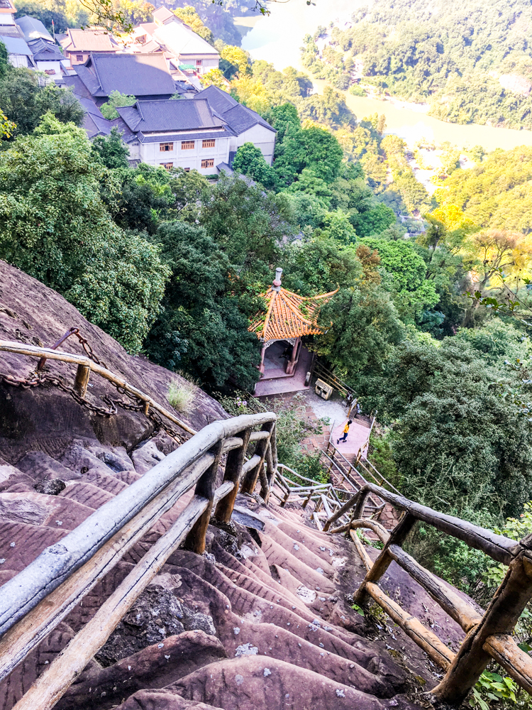 下山路有三個選擇,一是經過別傳寺的丹梯鐵索,一是山崖邊的沿山樓梯,還有就是原路折返。