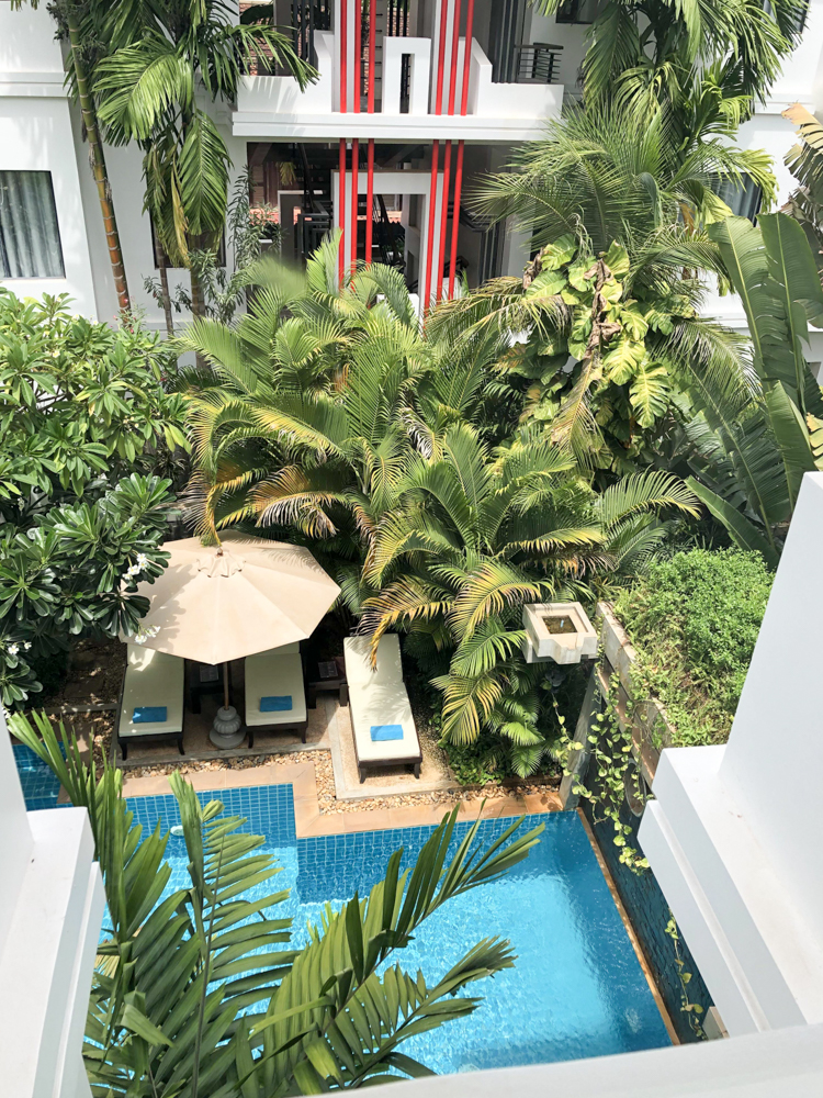 酒店跟網上圖片一致,可使用空間比較大,有個小陽臺和泳池。