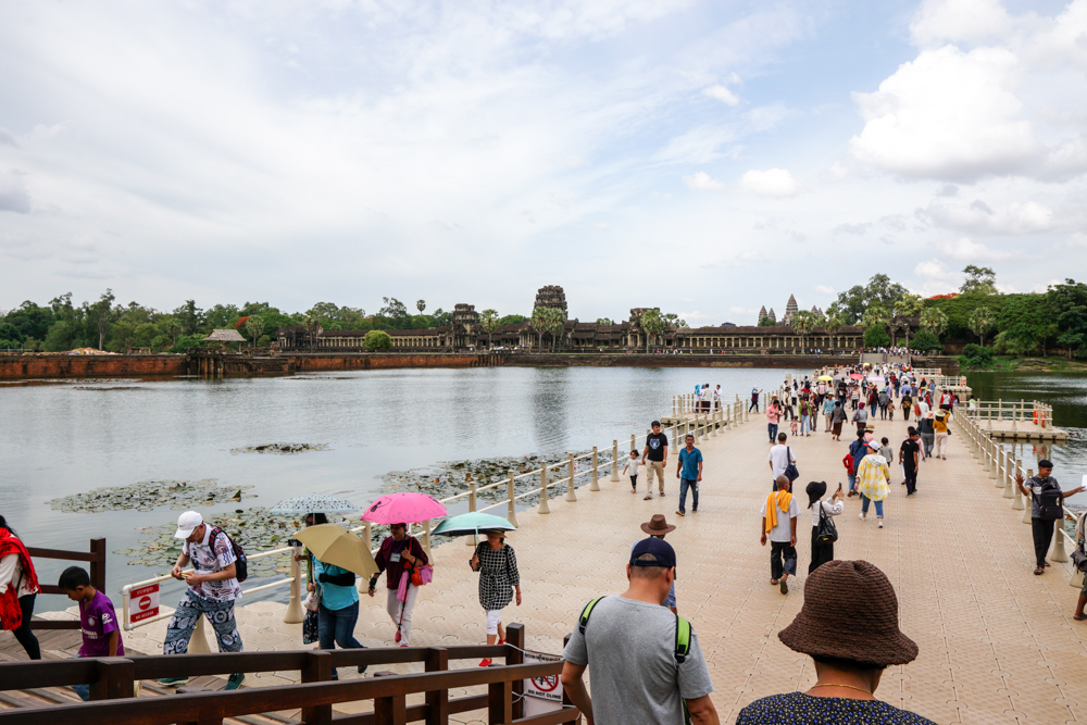吳哥窟現在不給走西堤進去,建了一大片的塑料浮橋通向外郭。