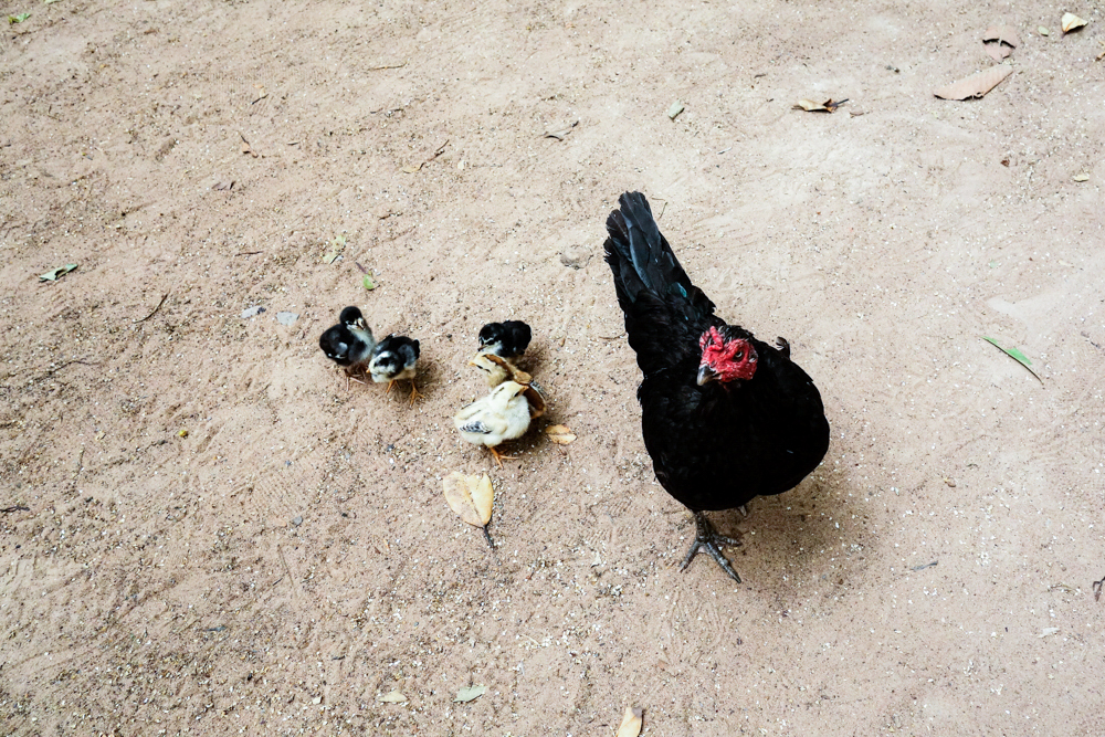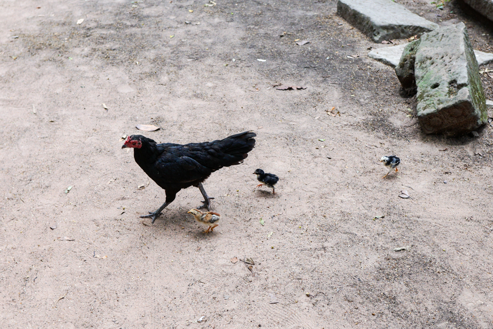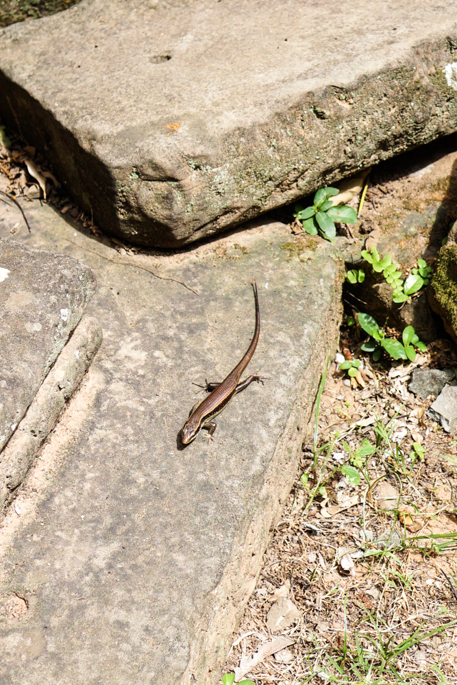 在塔普倫寺(Ta Prohm)門口遇到覓食的一家大小。