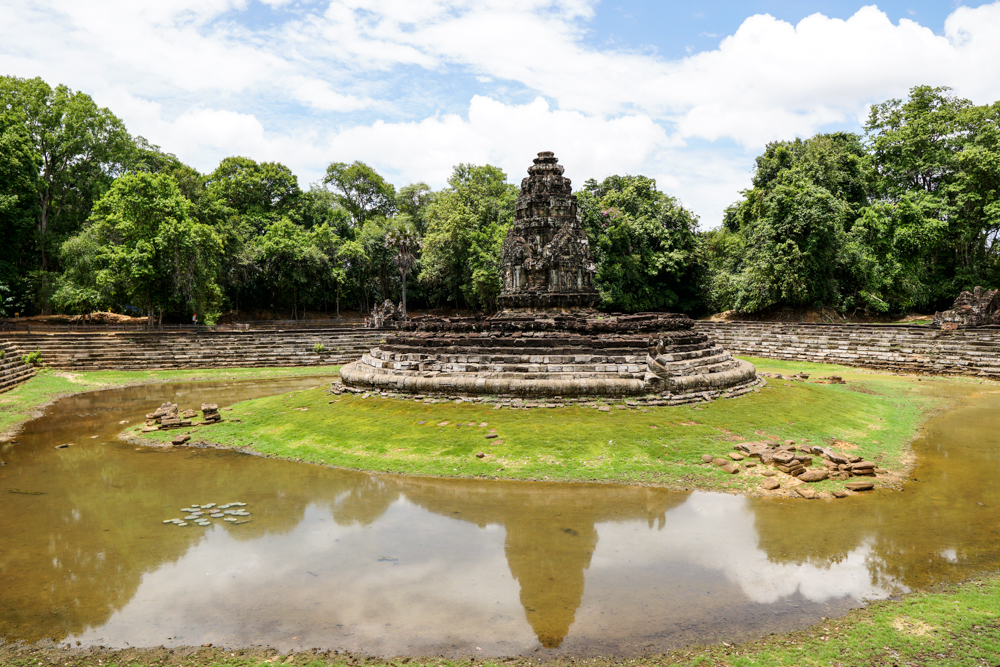 之後去了沒有水的龍蟠水池(Neak Pean)又叫涅槃宮,柬埔寨的雨季剛開始所以僅有點積水。