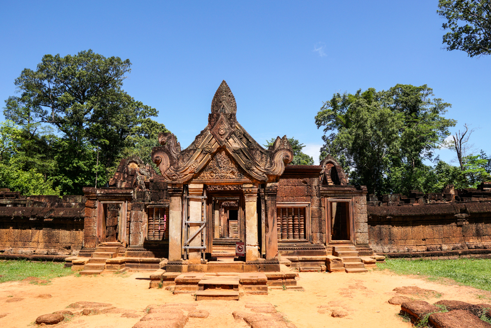 離吳哥窟大概1小時多點的車程,終於來到外圈第一個景點,女王宮(Banteay Srei)。